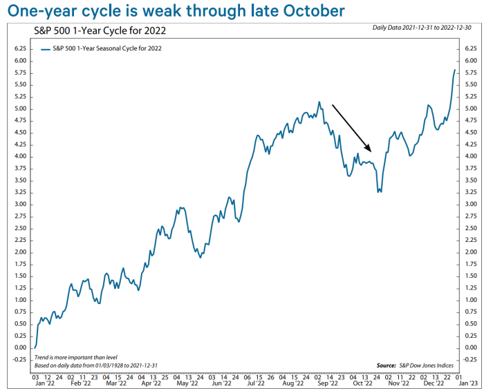 When US investors return from the long Labor-Day weekend, history indicates they'll be facing the weakest time of the year for the S&P 500 index: the stretch from Sept. 6 to Oct. 25, according to the note.